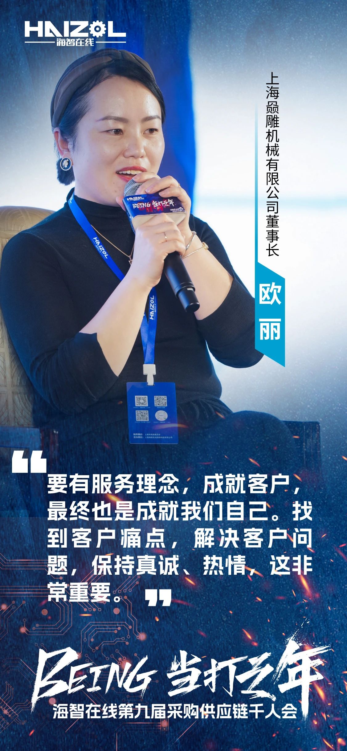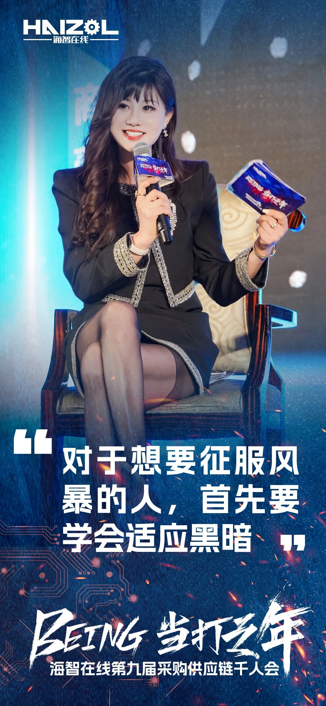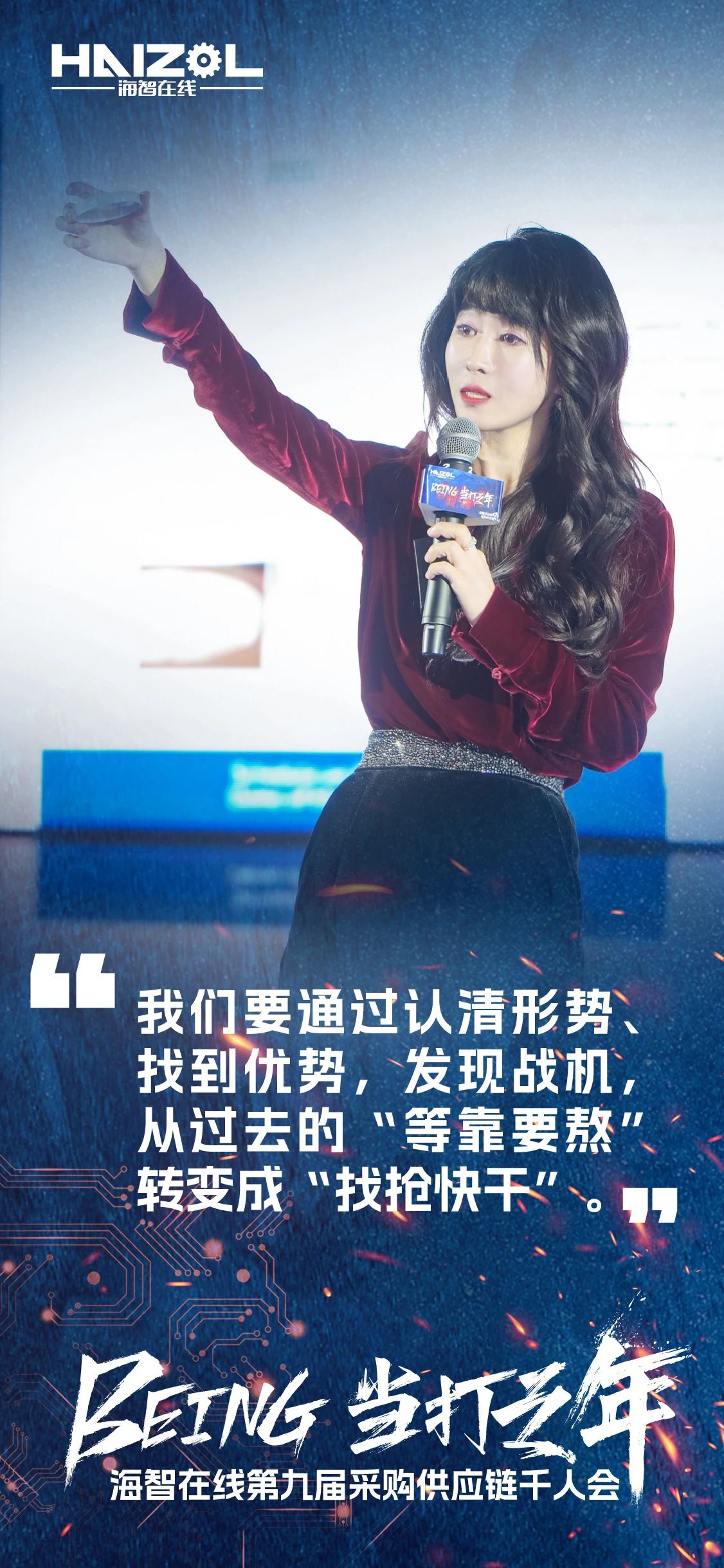 海智在线供应商事业部总经理商蕾在总结中表示,当打之年,我们必须积极。心态决定了我们的状态,要去看更大的世界,要学会适应黑暗,才能征服风暴,拿到我们想要的未来,成为我们想成为的人。