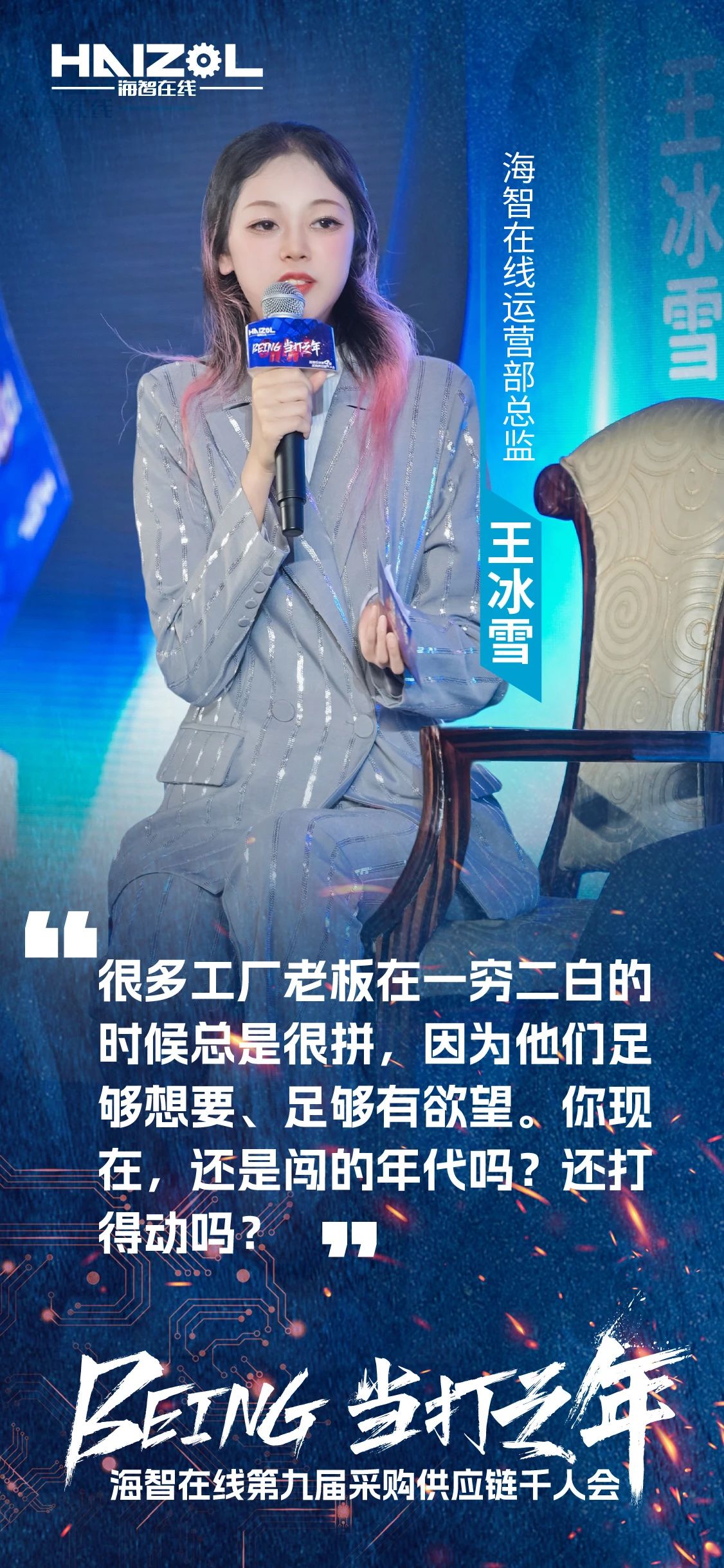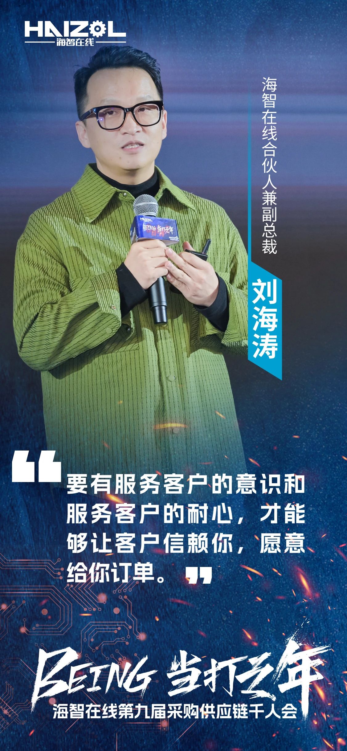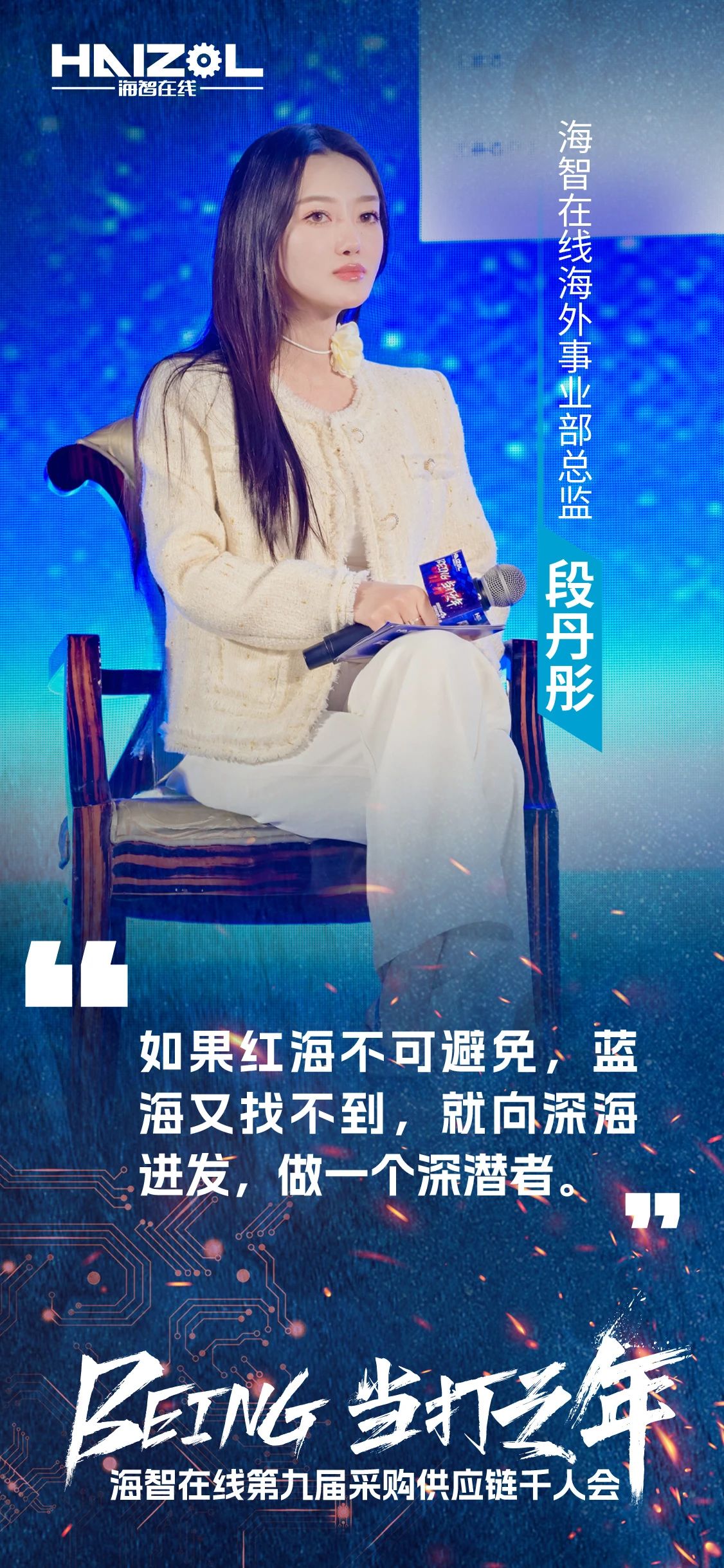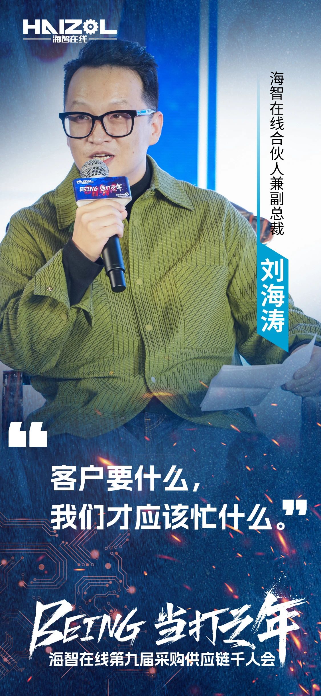 2024年12月14日,由上海市商务委员会指导,上海市徐汇区政府支持的海智在线第九届采购供应链千人会,在上海闵行星河湾大酒店成功举办。本次大会以“Being·当打之年”为主题,汇聚了来自全国各地的超过3500名采购、工厂及产业链供应链上下游的精英人士、行业专家和企业代表,是参与人数最多、覆盖范围最广、跨界合作最深入、互动形式最创新、参会反馈最热烈的一次里程碑式千人会。