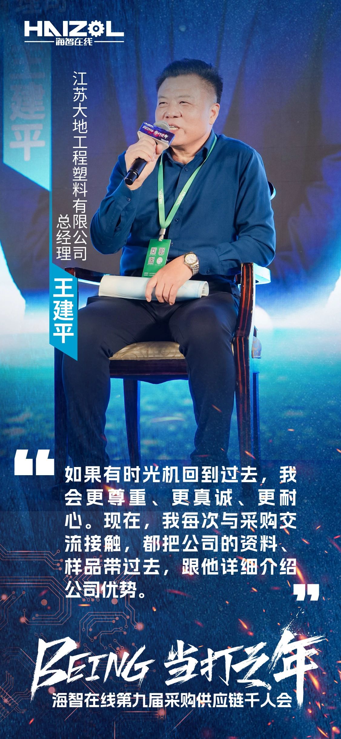 江苏大地工程塑料有限公司总经理王建平提到:我曾经因为太心急,在拜访客户时缺乏真诚和耐心,与人沟通不足,导致丢失了这个订单。如果有时光机可以回到过去,我可能还会犯同样的错误,得到这个终生难忘的教训。但是,我希望更多制造业的新生代、中生代能从我的经历中吸取经验与教训。在与采购沟通时,务必准备好详细的工厂资料、样品,踏实地走好脚下的每一步。