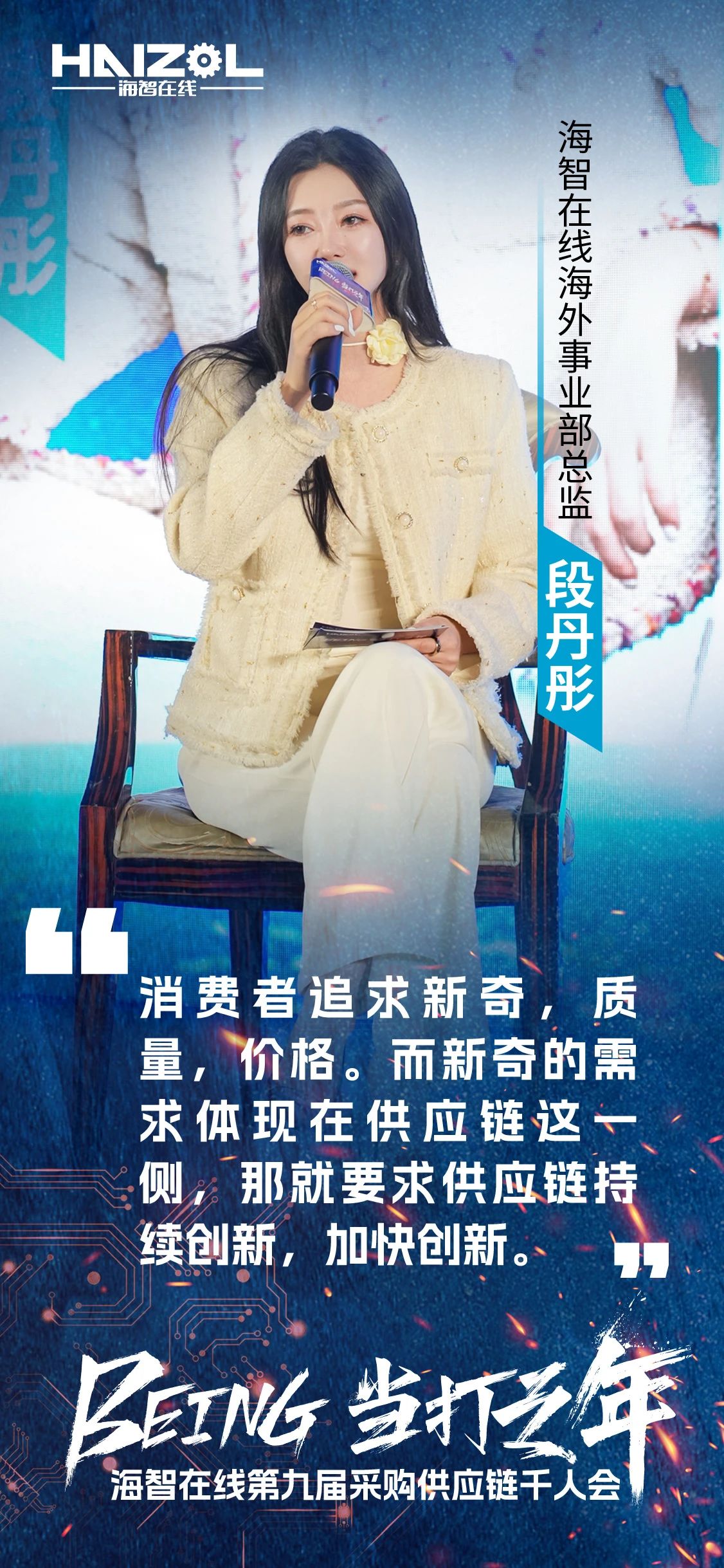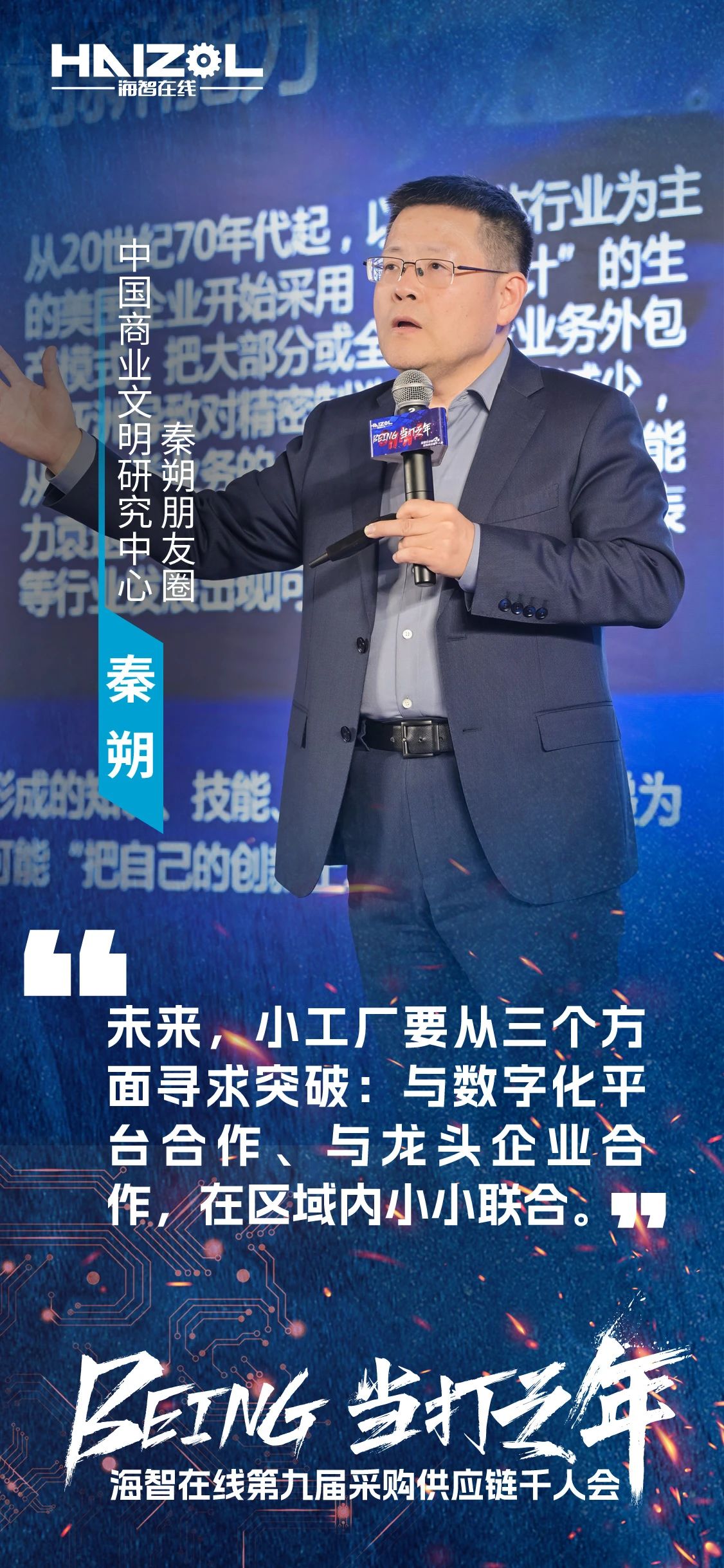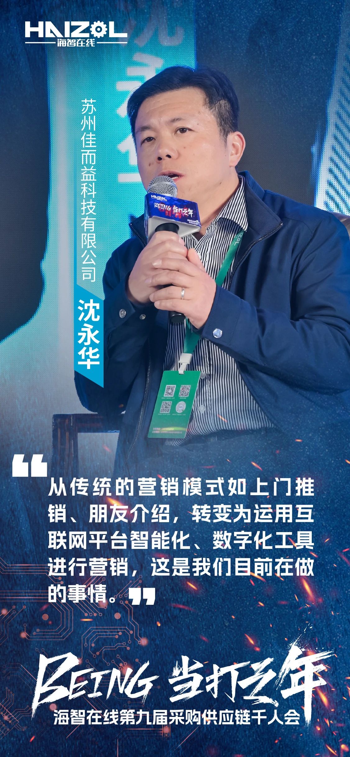 海智在线第九届采购供应链千人会紧密围绕中国及全球供应链发展趋势,聚焦于中国供应链中各类角色,深入探讨了国内国际环境对中国供应链的影响、中国供应链的独特优势是什么、未来创新的趋势与方向,以及中国中小工厂的生存策略与未来发展等重要话题,以进一步激发中国产业链供应链上下游核心成员的活力,鼓励“敢打、能打、会打”,共同推动中国制造业高质量发展。