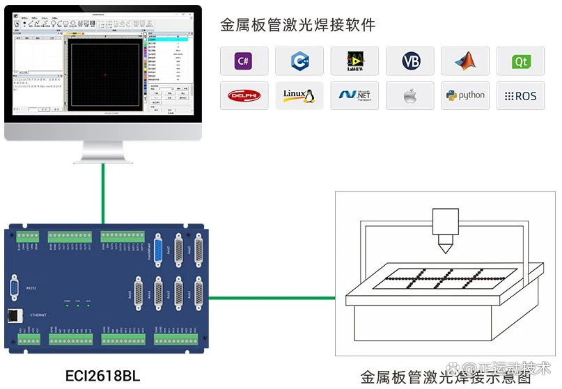 基于ECI2618BL激光加工控制系统主要用于金属板材切割、激光焊接等激光加工过程中,控制伺服电机来实现光纤激光头的移动,广泛应用于需要高速移动的光纤激光加工场合。能够实现大范围的移动,适合切割与焊接的加工。
